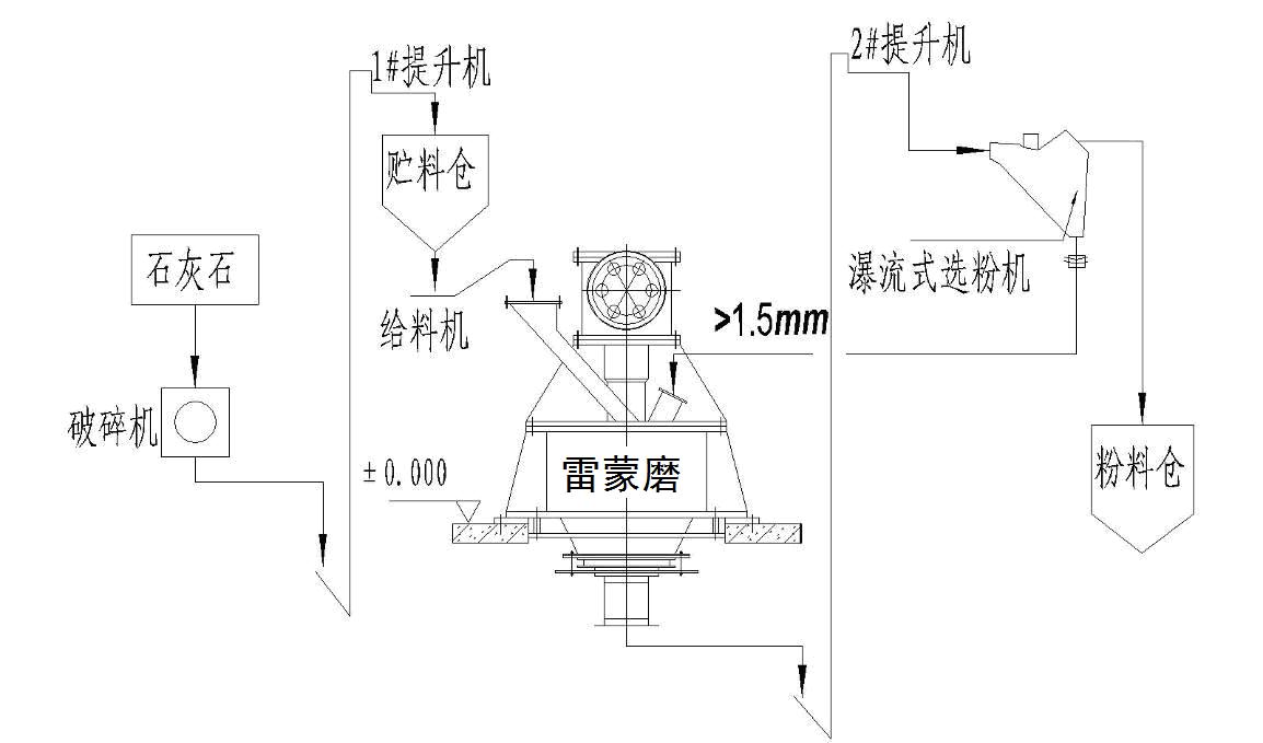 1)雷蒙磨粉機(jī)與瀑流式選粉機(jī)配套工藝
